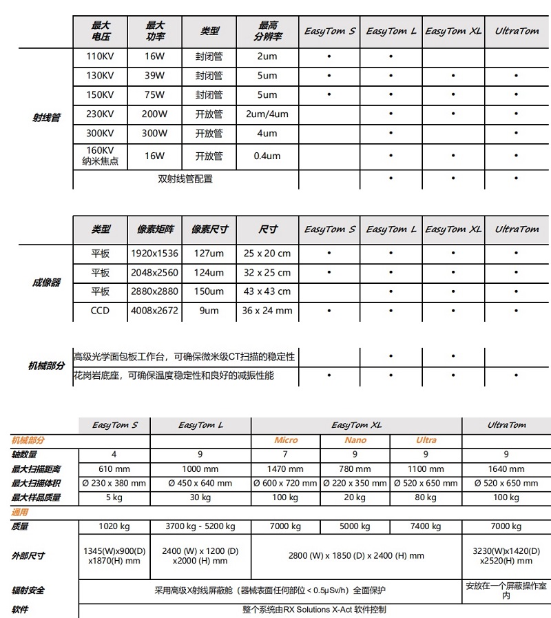分辨率可達(dá)0.4μm,有多種射線管和成像器供選擇