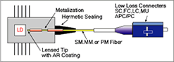 Perfect for coupling fiber with LD's and PD's for various applications such as DFB lasers, pump lasers or receivers. Our high quality specialty pigtails will improve coupling efficiency, increase product performance and save your costs
